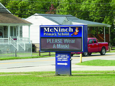 A sign in front of McNinch Primary School in Moundsville is seen in this September 2020 photo. (File Photo)
