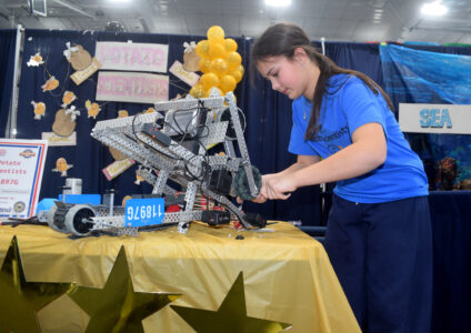 - Photo by Derek Redd Emory Maunz works on her robot as part of the Potato Scientists team from St. Michael Parish School on Wednesday.