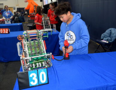 - Photo by Derek Redd Members of the Skylight team from Rockville, Maryland, work in the practice area at the VEX Robotics Gateway to the West tournament.