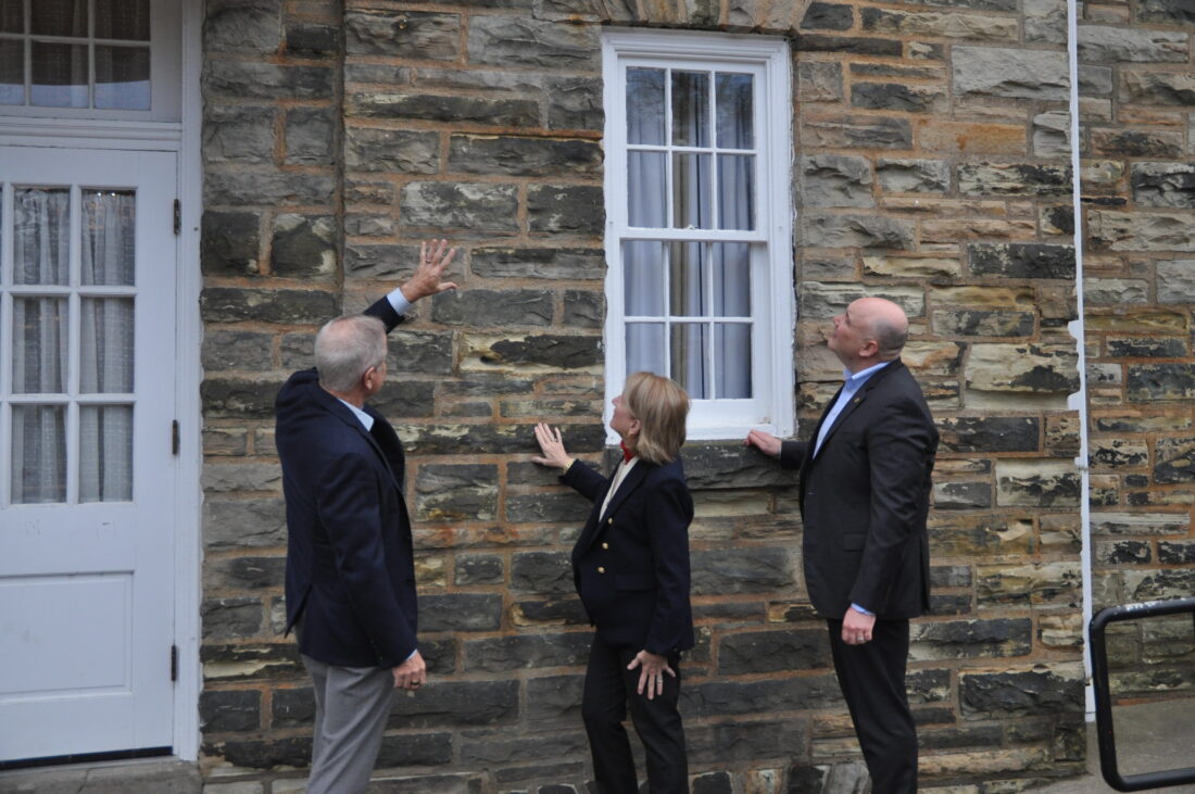 From left, Wheeling Park Commission President and CEO Bob Peckenpaugh, U.S. Sen. Shelley Moore Capito and Oglebay Foundation President and CEO Eriks Janelsins view the exterior of the Crispin Center at Oglebay Park. Capito helped secure $5,642,000 to renovate the exterior of the historic structure. (Photo by Stephanie Elverd)