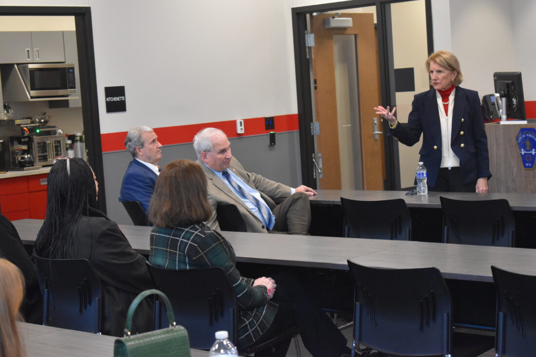 U.S. Sen. Shelley Moore Capito (R-W.Va.) speaks to city leaders at the new Wheeling Fire Department Headquarters during a visit to Wheeling on Tuesday. (Photo by Eric Ayres)