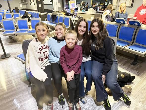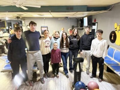 - Local exchange students gather for a night of bowling. Pictured from left are Alva Hedin (Sweden), Luna de Stephanis Gines (Spain), Aiden Brothers (Gines’s host brother), Leni Toerke (Germany) and Giulia Lovisolo (Italy).