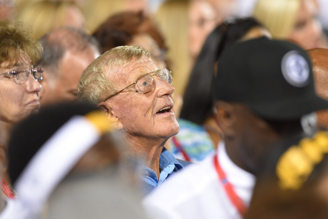 - Lou Holtz attends the induction ceremony for Jerome Bettis at the Pro Football Hall of Fame, Saturday, Aug. 8, 2015 in Canton, Ohio. (AP Photo/Don Wright)