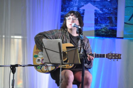 - Photo by Stephanie Elverd Melody Petras sings for attendees at the Wheeling Artisan Center prior to the start of the Youth Show of Hands, a student-led entrepreneurial showcase hosted by Wheeling Country Day School and Wheeling Heritage.