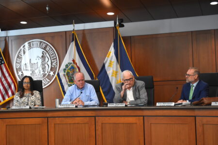 Crews with Triton Construction work on replacing the sidewalks at the corner of 16th and Eoff Streets on Tuesday afternoon.