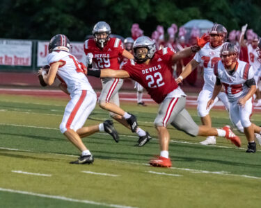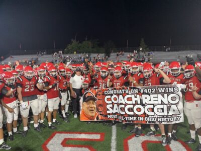 That is what Hall of Famer Reno Saccoccia told the crowd gathered near midfield at Harding Stadium after he became the state of Ohio’s all-time coaching wins leader with Big Red’s 21-0 opening night victory over visiting Louisville.