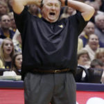 - West Virginia head coach Bob Huggins reacts to a referee calling a foul on his player during the second half of an NCAA college basketball game against Kansas State, Saturday, Feb. 11, 2017, in Morgantown, W.Va. West Virginia defeated Kansas State 85-66. (AP Photo/Raymond Thompson)