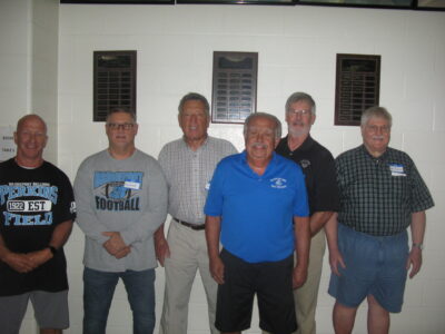 Bridgeport High School held a special celebration Friday night commemorating 100 years of playing football at Perkins Field. Several past head Bulldog grid coaches returned for the affair and delivered speeches. Pictured, from left, are Rick Goodrich, Rudy Vavrock, Gary Zelinski, Bridgeport ...