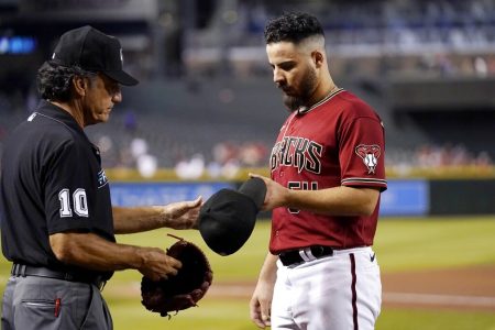MLB instituted regular checks last June 21 for grip aids. Seattle’s Héctor Santiago was ejected on June 27 and Arizona’s Caleb Smith was tossed on Aug. 18, and both received 10-game suspensions.