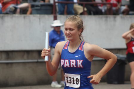 - Photo by Cody Nespor Wheeling Park’s Merritt Delk runs the first leg of the 4×800 relay during Friday’s WVSSAC Class AAA State Track Meet in Charleston.