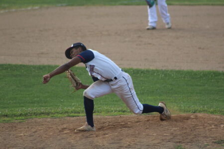 Wheeling Wildthings pitcher Luca DiLorenzo follows through to home plate during a game against Moundsville Post 3 Friday.