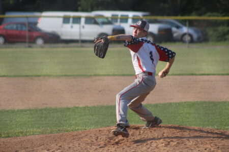 - Photo by Cody Nespor Moundsville Post 3 pitcher Luke Cramer threw a complete game in a victory against the OV Mountaineers Friday.