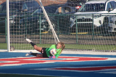 Wheeling Park goalie Ryleigh Hicks makes a stop.