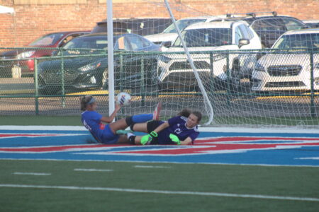 - Photo by Cody Nespor A Charleston Catholic shot sneaks under the arm of Wheeling Park goalie Ryleigh Hicks (28).
