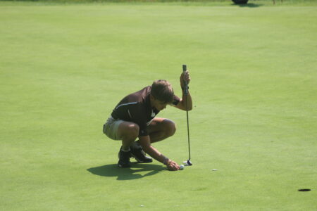 - Photo by Cody Nespor John Marshall’s Colton Sprowls surveys the green on 15 during the OVAC 5A Golf Championship Thursday.