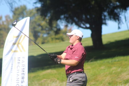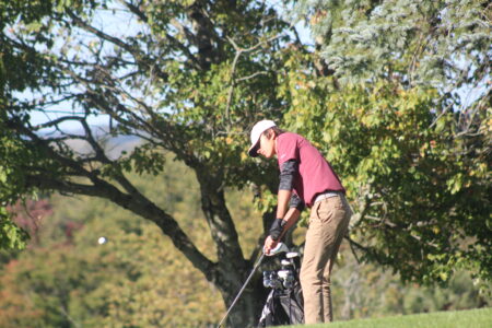 - Photo by Cody Nespor Wheeling Park’s Noah Milhoan surveys the green on hole 9.