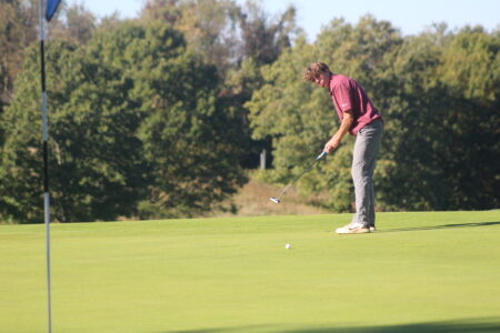 - Photo by Cody Nespor John Marshall’s Colton Sprowls putts on 18.