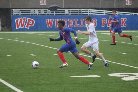 WHEELING — The typical footwear of soccer players is, of course, cleats. A pair of galoshes might have been more appropriate given the conditions at Wheeling Island Stadium Saturday, where three OVAC Boys Soccer Championships were held in a steady downpour throughout the morning and afternoon.