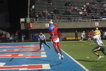 Aiden Davis continued to spread the ball around in the second quarter, hooking up with Mykel Davis for a 20-yard touchdown two minutes into the second quarter, firing a 21-yard score to Stephens Jr. halfway through the quarter, and lobbing a long bomb to Stephens Jr. on a corner route for a 56-yard score with under three minutes to play in the half.