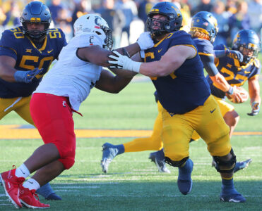 West Virginia’s Zach Frazier, pictured, was named a first-team Academic All-American on Tuesday, one of 27 players to receive the honor. A second-team All-American, the award makes Frazier a two-time All-American this season.