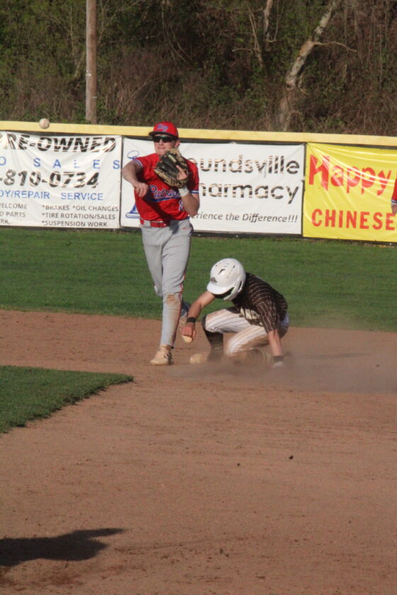 - Wheeling Park’s Nate Simon tries to turn the double play at second base against the John Marshall Monarchs on Thursday at Monarch Field.