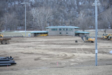 The baseball field, meanwhile, is getting an entire new surface as Field Turf, of Pittsburgh, is busy performing the work. A total of three inches of dirt has been removed from the original field and work is progressing.