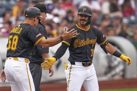 The Pirates scored in the bottom of the first when Nick Gonzales hit a leadoff triple and came home on Andrew McCutchen’s single.