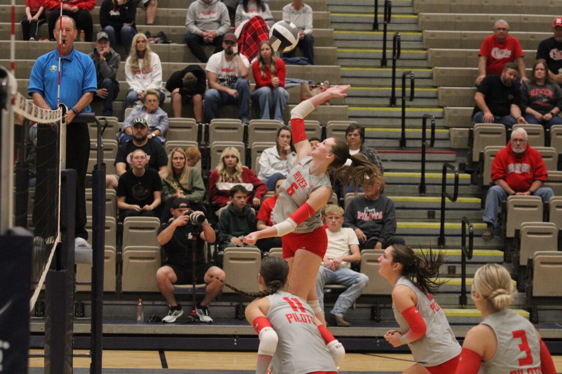 Hallie Hammel led River with 13 kills, followed by Mallorie Maddy’s 11 kills. Hammel also led the team with 12 digs. Maci Isaly had 11 while Maddy and Aubrey Fetty each had 10. Reagan Lucas cashed in three service aces, and Zoey Fox put down three blocks.
