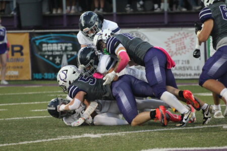 Cox started the evening’s scoring with a 18-yard touchdown on Ferry’s first drive of the night, a quick-hitting four-play sequence that put the Purple Riders ahead 7-0 at the 10:27 mark of the game’s opening quarter.