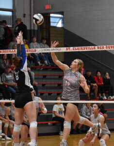 The second set saw the two rivals knotted at 4 before St. Clairsville gradually pulled away. The Red Devils tallied seven of the final nine points for a 2-0 lead.