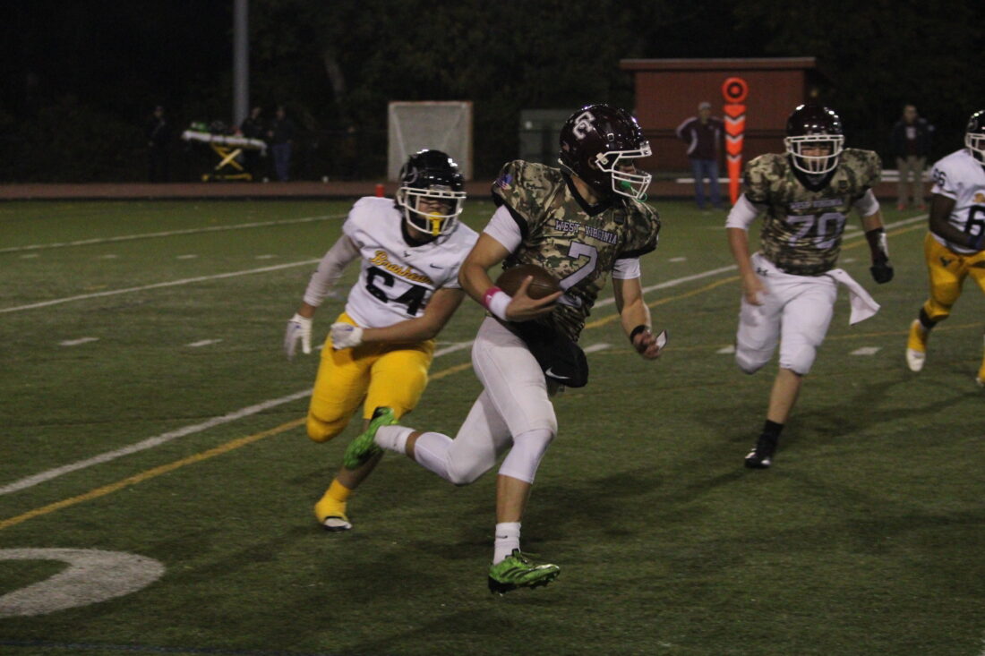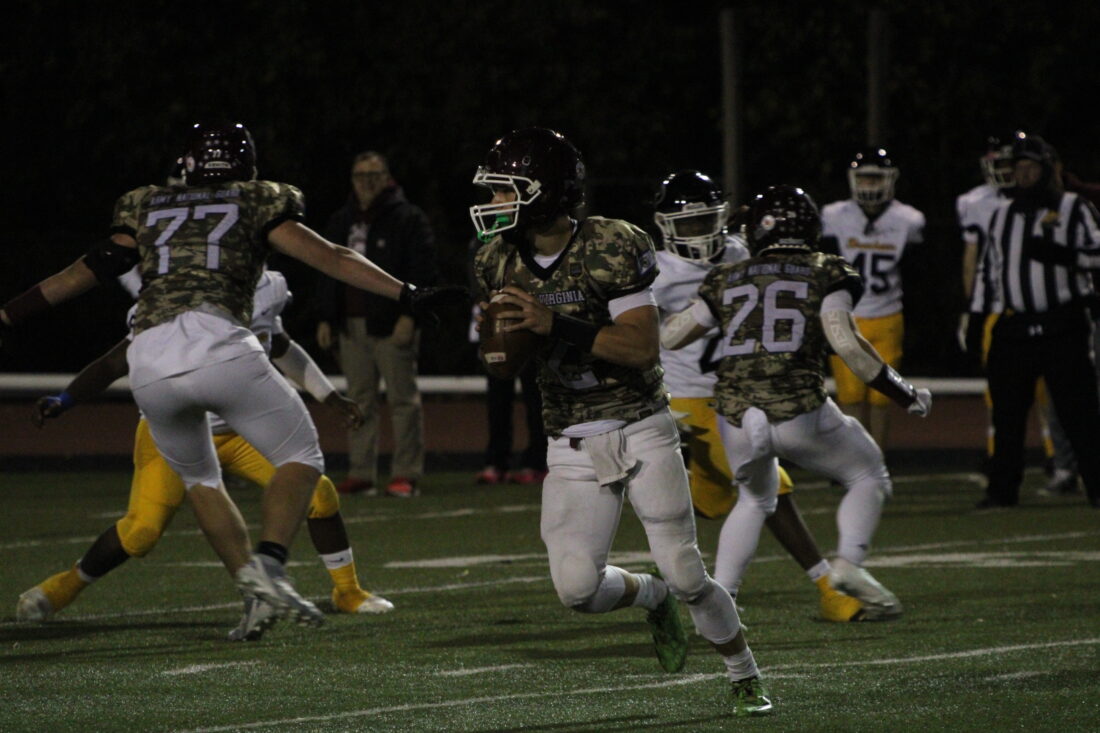 Wheeling Central dominated on the ground Friday, totalling 258 rushing yards and five touchdowns. Especially noticeable was the Maroon’s performance in the red zone, where Kade Koroneos ran for four touchdowns behind a crushing effort from Central’s offensive line, who got plenty of push all night.