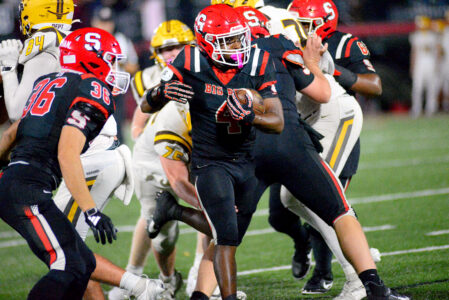 Crosier capped the next Big Red drive with a one-yard plunge after Steubenville had converted a fourth down, then after a stop from the D, Colton Henderson went 46 yards to the 2 and Ca’Juan Bryant (13 carries for 94 yards) went the last 2 yards for his first of two TDs, making it 24-7 Steubenville at the half.