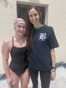 “Watching her break the record, not once but twice in that eight-day period in the 100 breaststroke was amazing,” Anderson said. “And then in the 500, she hasn’t swam that in a while, so for her to go out there this year and break the school record, which was mine, it was very rewarding to see her breaking a record of mine that had been there for way too long.”