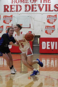 St. Clairsville bit back early in the second quarter, with Anna Kain nailing 3-pointers on back-to-back possessions to bring the Red Devils within 13, 23-10, with five minutes ’till halftime, and 13 was the Husky lead when the game reached its intermission, 31-18.