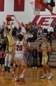 - Bellaire’s Jace Violet rises for a jump shot Wednesday during the Big Reds’ road game against the Bridgeport Bulldogs. Violet scored 15 points.