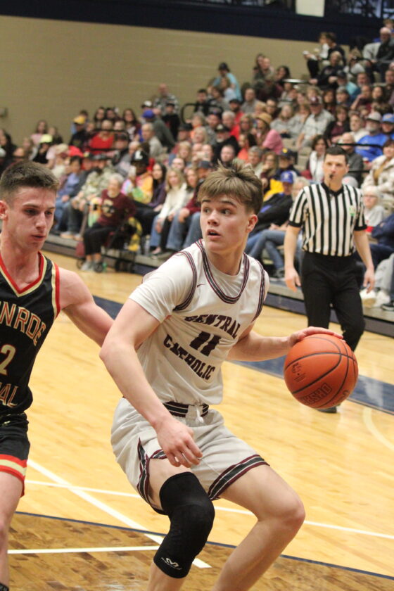 After leading 18-12 after the first quarter of play, Wheeling Central built their lead in the second frame, with Luke Sancomb and Max Olejasz each hitting two 3-pointers to help send Central into the locker rooms ahead 39-18.