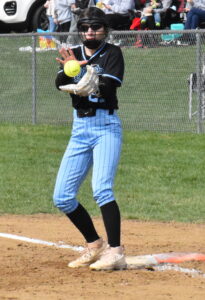 Freshman Emma Vitek lined a leadoff triple to the fence in dead center and, with one out, raced home with the first run when Karlie Lander’s shot to third was too hot to handle. After courtesy runner Mya Fabry stole second, Addie Jones ripped a double to left-center that knocked in Jones for a 2-0 advantage.