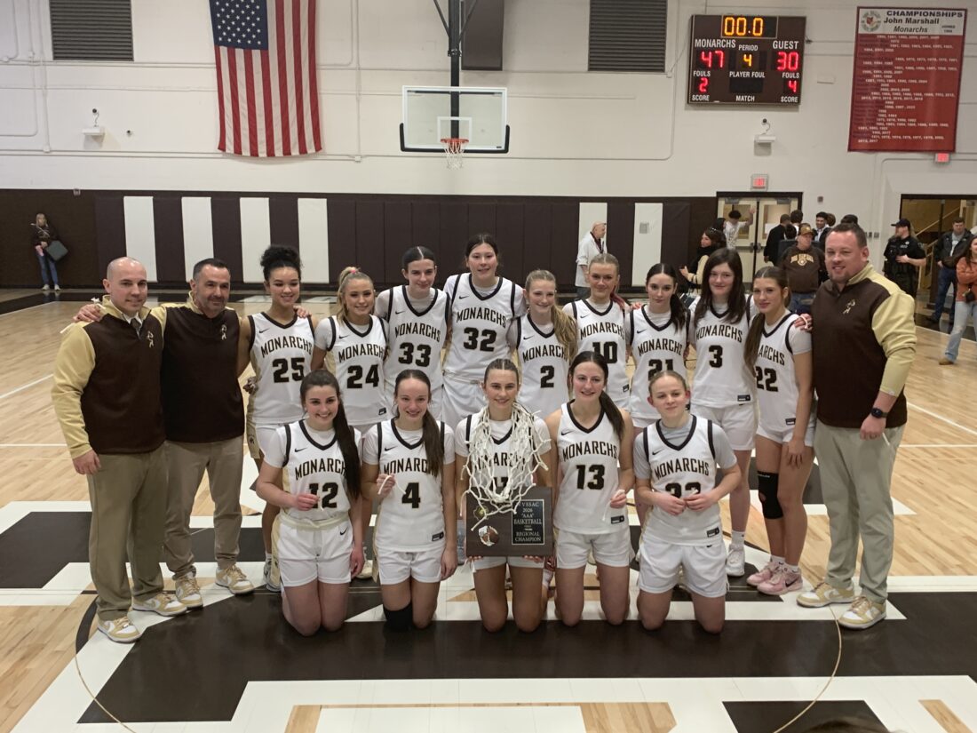 - The John Marshall Monarchs, pictured with their WVSSAC Class AAA Region 1 championship plaque follwing a victory over the Fairmont Senior Polar Bears inside the John Marshall Field House. With the win, John Marshall advances to next week’s state girls basketball tournament in Charleston.