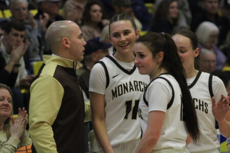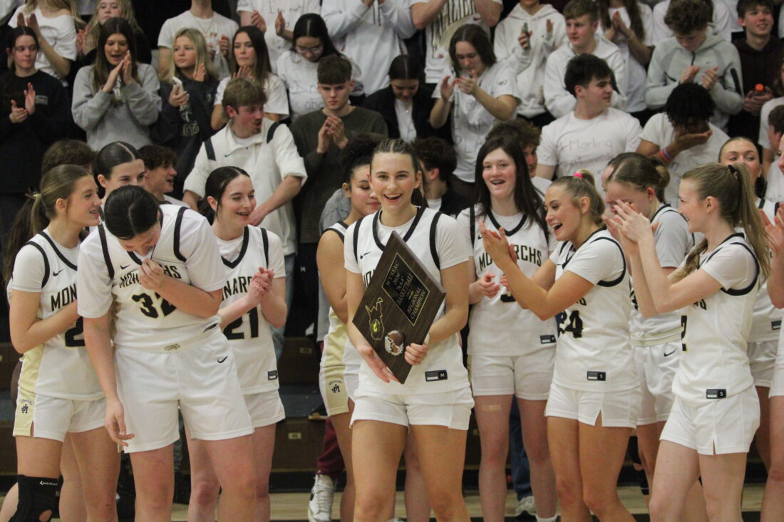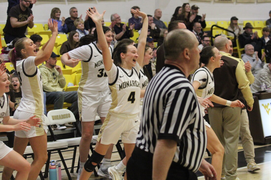 When the dust cleared on the contest, history had been made. The Monarchs punched their ticket to the WVSSAC girls basketball state tournament for the first time in 32 years with a 47-30 victory over the Polar Bears, while John Marshall senior Rilee Storm had an extra-special evening, pouring in 20 points to become the Monarchs’ all-time leading scorer and add to the jubilation of the evening.