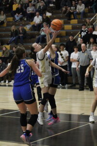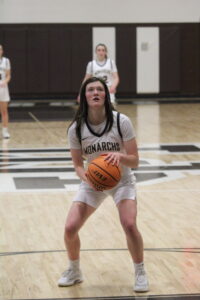 With the clock ticking under six minutes in the game, Storm’s scoring total sat at 16. The senior drove to the basket down the left wing, and collided with a Polar Bear defender, flipping the ball up with her back nearly facing the basket– and sinking the acrobatic layup to reach 18 points on the game, and reach a new school record for the Monarchs.