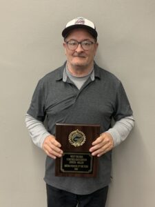 Kim North, pictured with his 2026 West Virginia Wrestling Coaches Association Snyder-Miller Media Person of the Year Award. This year was the third such time North has won the award.