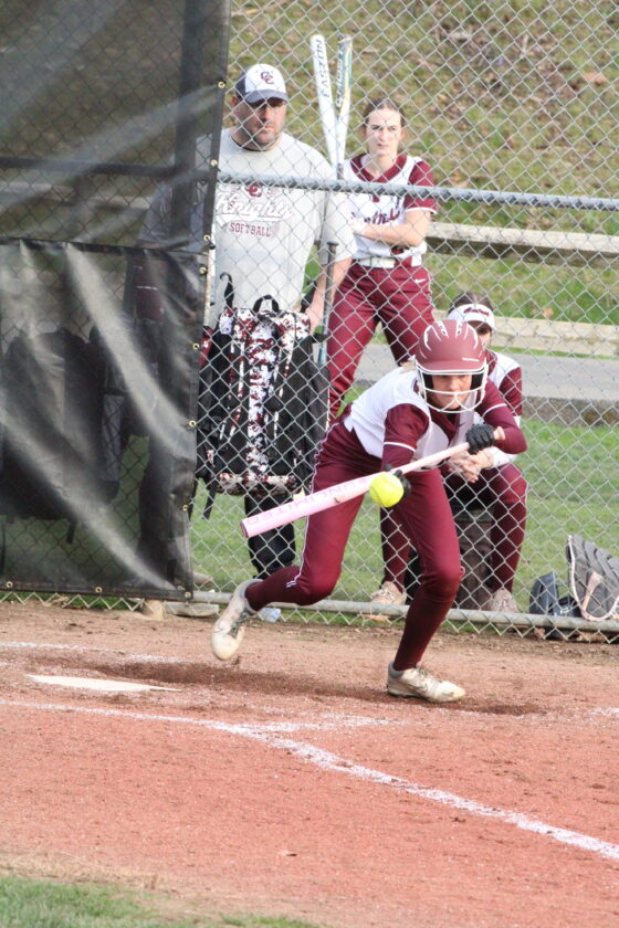 After working through some trouble on the basepaths in the top of the seventh, the Cadets spent little time getting baserunners of their own. Macy Sustik started the inning with a looping single to right along the foul line, and after a fielder’s choice moved the runner to second, Kimber Kotson laid down a bunt to first base and legged out a single to put runners on the corners.