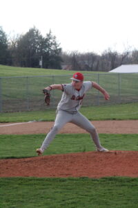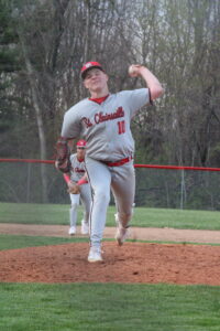 - St. Clairsville’s Hudson Florence delivers a pitch Monday against the Union Local Jets. Florence struck out 10 in a 12-2 Red Devils win.