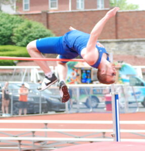Photo Provided Wheeling Park’s J.T. Pockl clears the bar at 6-feet, 4-inches to win the high jump Saturday at the Russ Parsons Invitational at Parkersburg.